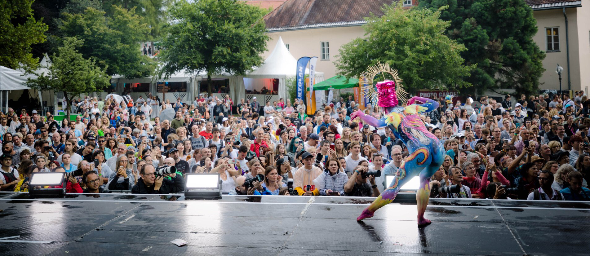 Deine Kunden und Besucher auf Messen oder Events aller Art können live dabei sein, wie der Pinsel geschwungen wird und das Bodypainting auf dem Körper des gebuchten Modells entsteht. Dies ist ein ungewöhnlicher Anblick, der die Umstehenden in seinen Bann zieht und sie gerne am Firmenstand verweilen. Es ist hierbei durchaus möglich, das Corporate Design der Firma oder auch das Firmenlogo auf den Körper zu bringen. Das Motiv kann hierbei ganz nach Deinen Wünschen und Vorstellungen gestaltet werden, angepasst an das zu bewerbende Produkt. Das aufgeschlossene Modell interagiert bereits während der Bemalung mit dem Publikum. Bei der anschließenden Performance, einem Rundgang durch die Messehalle, kann das Modell Firmenflyer und ähnliches verteilen. Die Menschen kommen auf das Modell zu und wünschen sich ein gemeinsames Foto - wie hervorragend, wenn hier das Firmenlogo groß auf dem Körper prangt und dieser außergewöhnliche Moment mit Freunden und Familie über den WhatsApp-Status und auf Socialmedia Plattformen geteilt wird!